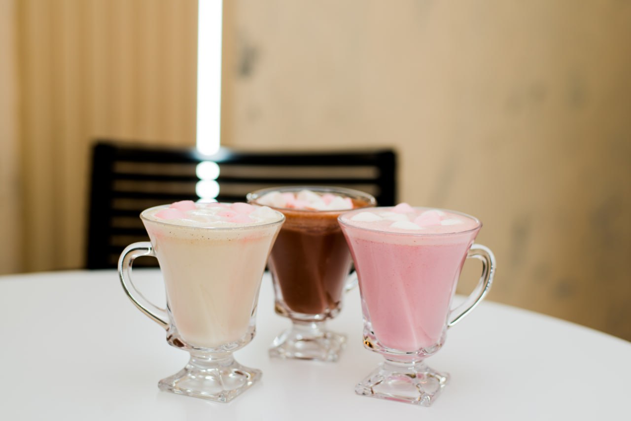 Рожевий, білий або темний гарячий шоколад з зефірками